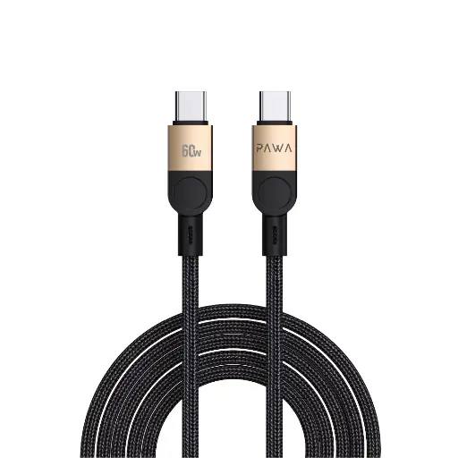 واير شحن PAWA Levin خام من USB-C إلى USB-C بقدرة 60 واط بطول 1.2 متر – أسود صحراوي